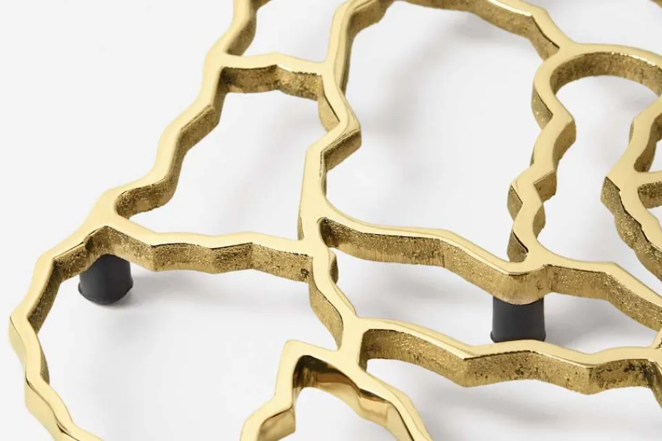 Placera ej heta pannor eller kastruller direkt på underlägg i mässing. Mässingen leder värme och det finns risk att ömtåliga ytor skadas.