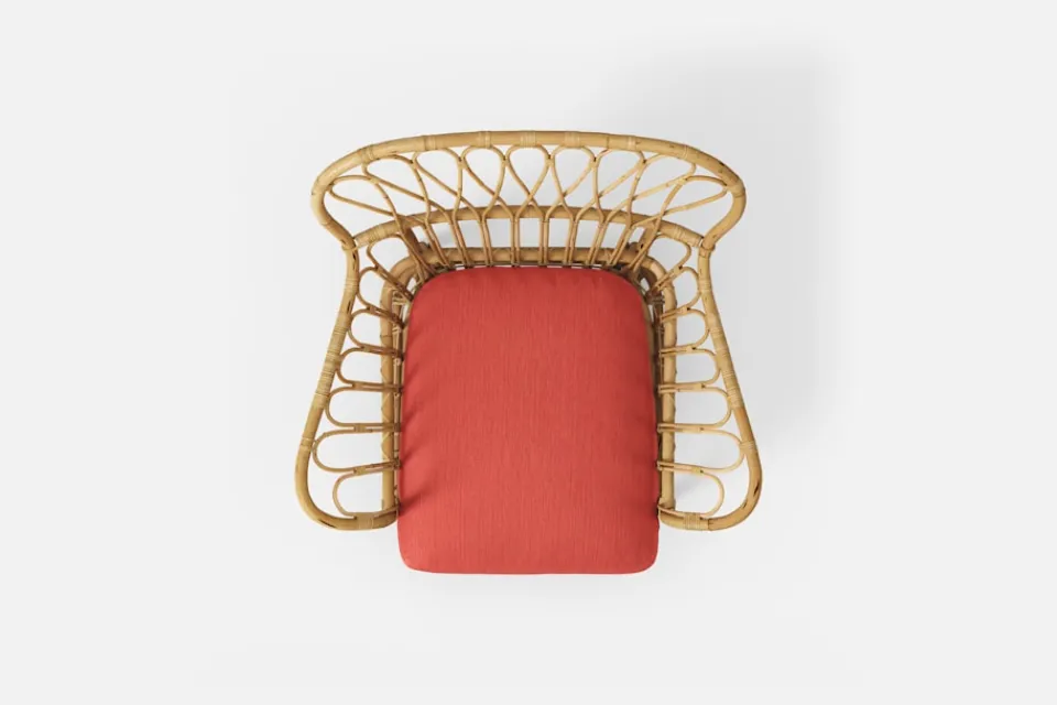 Dyna som passar till Fåtölj 311 klädd i textil Vägen Orange. Formgivaren Margit Thorén skapade möbeltyget Vägen tillsammans med Svenskt Tenns grundare Estrid Ericson 1949. Textilen får en vacker lyster av tre lintrådar i olika nyanser.