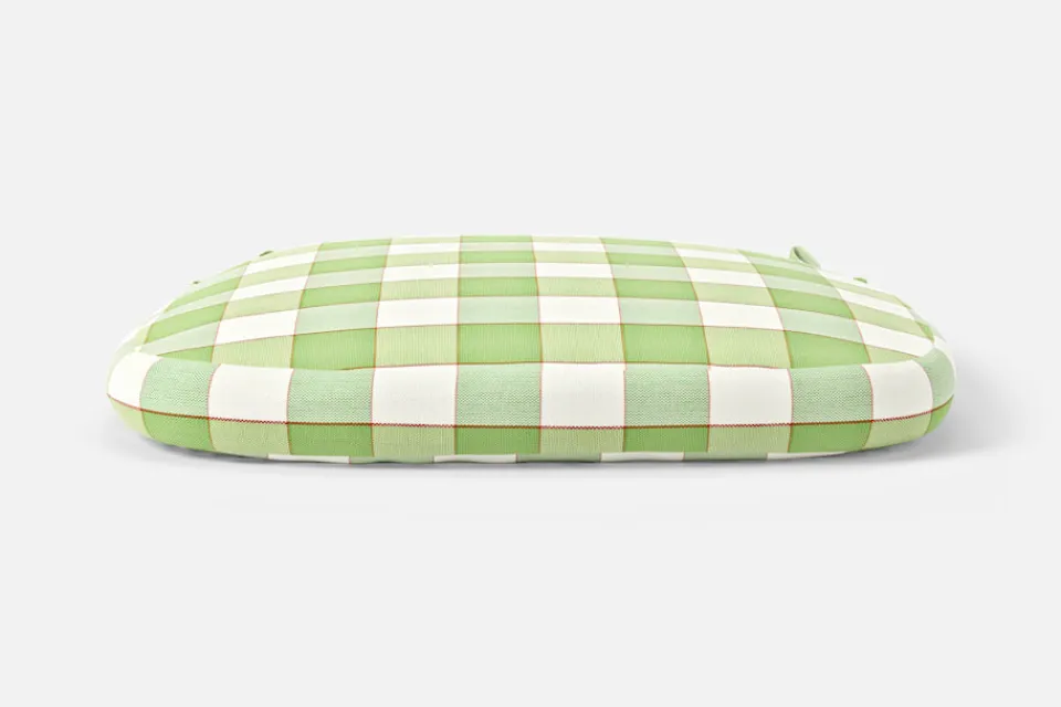 Tyget är ej avtagbart. Vid rengöring rekommenderas kemtvätt av hela dynan.