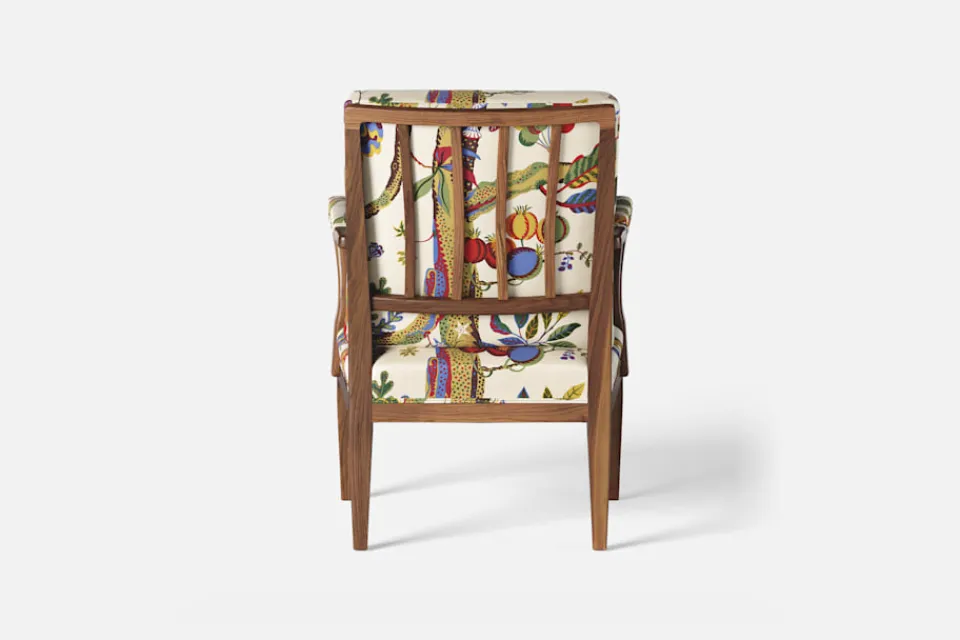 I formgivningen av karmstol 868 inspirerades Josef Frank av 1700-talets nätta karmstolar med elegant svängda armstöd och raka ben. Han formgav stolen 1938.