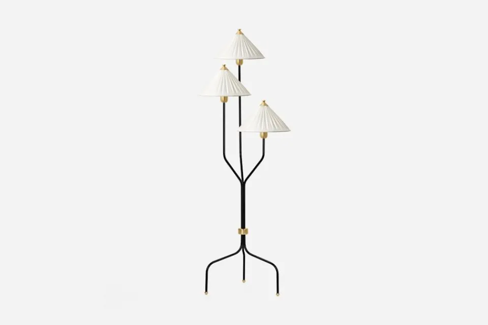Denna golvlampa i svartlackerad mässing är formgiven av Josef Frank, vars lampor ofta var nätta och luftiga. Josef Frank formgav armaturerna så att glödlampshållaren blev synlig under skärmen.