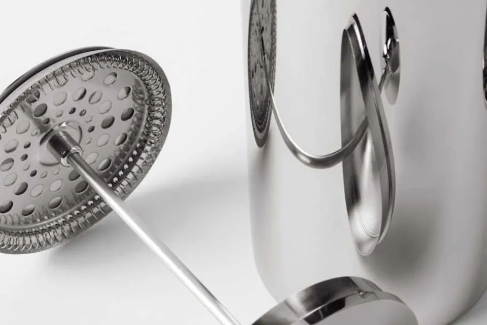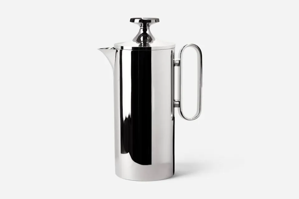 En elegant presskanna i rostfritt stål, formgiven av Corin Mellor för brittiska David Mellor Design. Kaffepressen har en högpolerad finish och stilren design, lika funktionell som vacker att titta på.