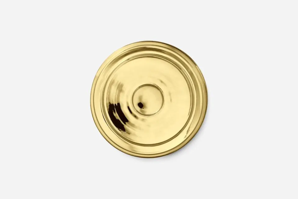 Erika Pekkari har formgivit Kruka Svenskt Tenn i stengods med tillhörande, dekorativa mässingsfat.