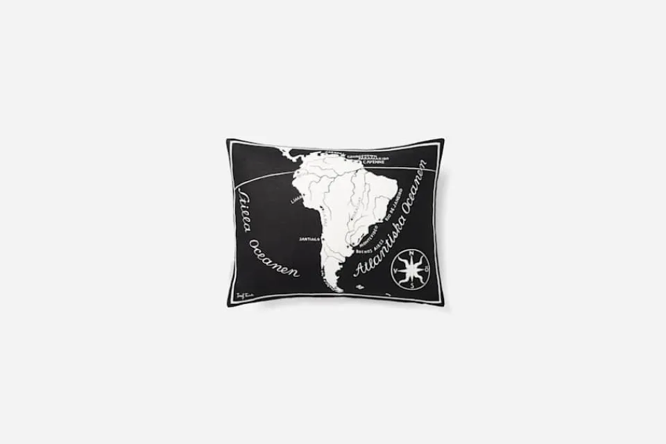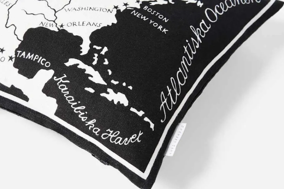 Kuddarna med Josef Franks mönster Världskartan från 1939 föreställer en värld i fred, och kontinenter utan gränser mellan länderna. De tre olika kuddarna i Svenskt Tenns sortiment bär motiv på båda sidor och kan vändas efter tycke och smak. Motiven består av Europa/Nordamerika, Europa/Afrika, Nordamerika/Sydamerika och Asien/Oceanien. Kuddarna finns i svart och lila utföranden.