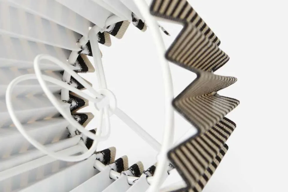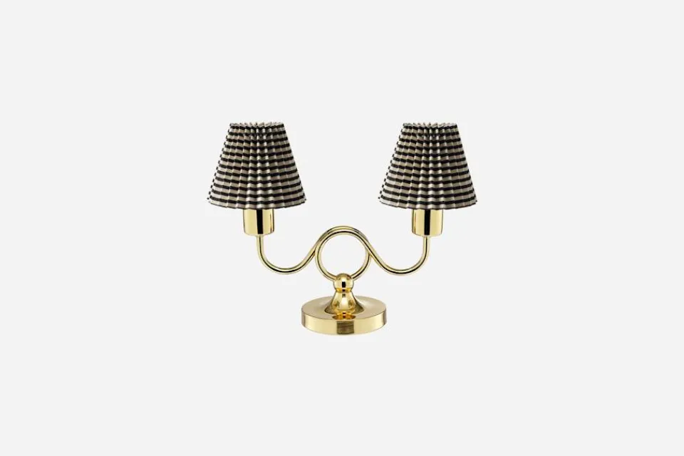 Veckad lampskärm i tyg Moire Stripe av Helene Blanche. Tyget har en klassisk elegans men samtidigt en modern känsla. Den unika sammansättningen av bomull och linne gör materialet krispigt och elegant. Svenskt Tenns plisserade lampskärmar tillverkas för hand. De passar både lampor i vårt eget sortiment, liksom andra moderna lampor och vintagelampor.