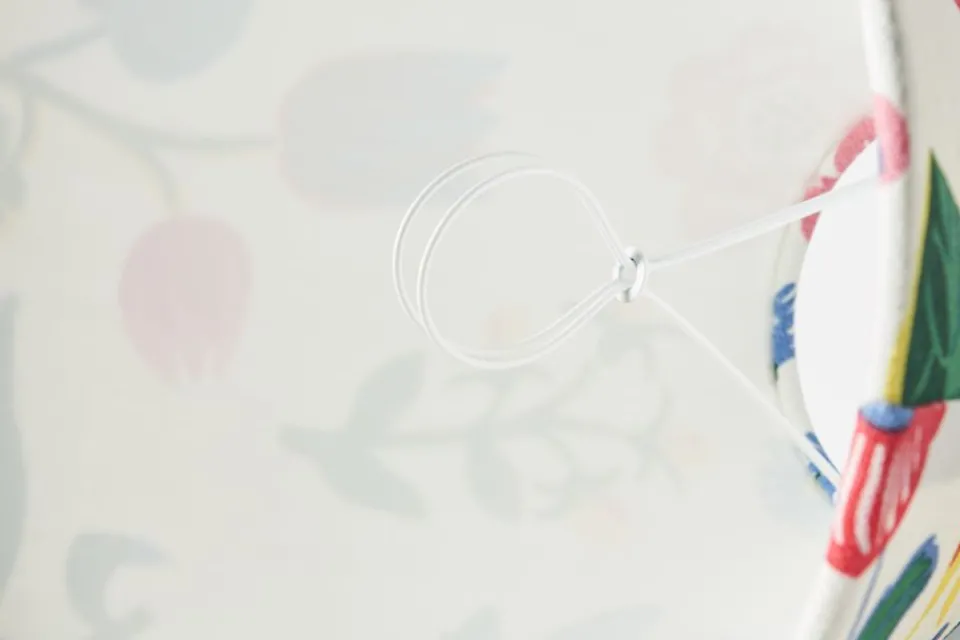 Josef Frank formgav en lampskärm till varje modell av sina lampor. Ursprungligen var de alla i vit textil, men Estrid Ericson lät senare sy upp dem med mönster av Josef Frank och andra formgivare. Denna lampskärm i linnekretong har mönstret Mille Fleurs. Ett tidigt komponerat mönster som Josef Frank döpte till Tulipan gjordes senare om för att passa den nya trycktekniken som började användas på 1940-talet. Mönstret var med denna förändring inte längre roterat, utan byggdes istället upp av rektanglar i upprepning. Det nya mönstret, som också fick en annan färgställning, döptes om till Mille Fleurs, den franska översättningen av Tusen Blommor.