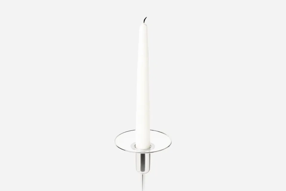 Elegant ljusmanschett i glas från Nybro Crystal. Skyddar såväl ljusstake som bord och duk från rinnande stearin.