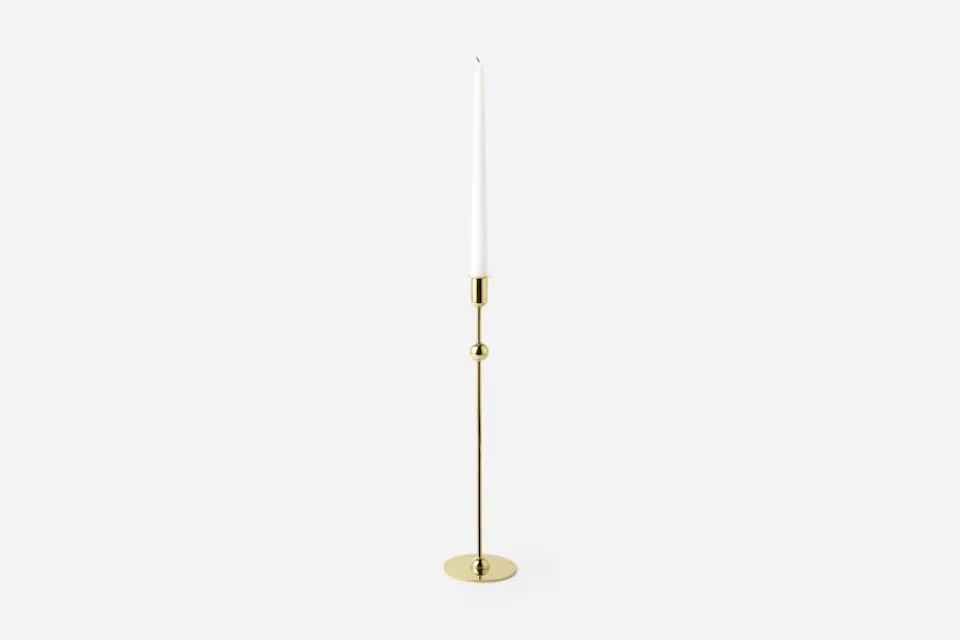 Belysningen vid ett matbord var viktigt för Estrid Ericson, som i ett radioföredrag från 1951 sa att ljusstakarna skall vara höga för att inte ljuset ska komma underifrån, då detta ger ett ofördelaktigt utseende åt gästerna. Denna ljusstake i mässing har Estrid Ericson formgivit efter denna tanke.