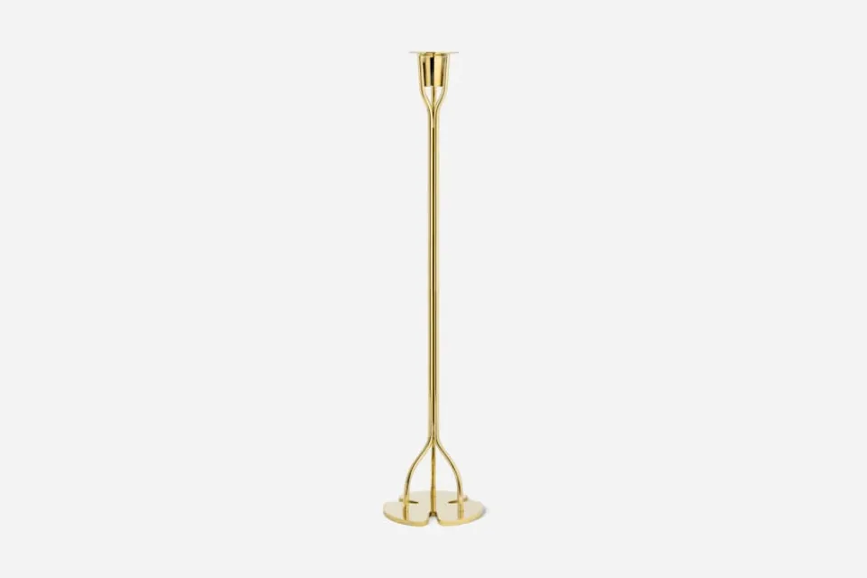 Denna mässingsljusstake är ett tydligt exempel på hur naturen med sina organiska former alltid varit en stor inspirationskälla för Josef Frank. Från klöverformen i foten har Josef Frank sammanfogat tre tunna ben som med en raffinerad enkelhet bär upp ljushatten.