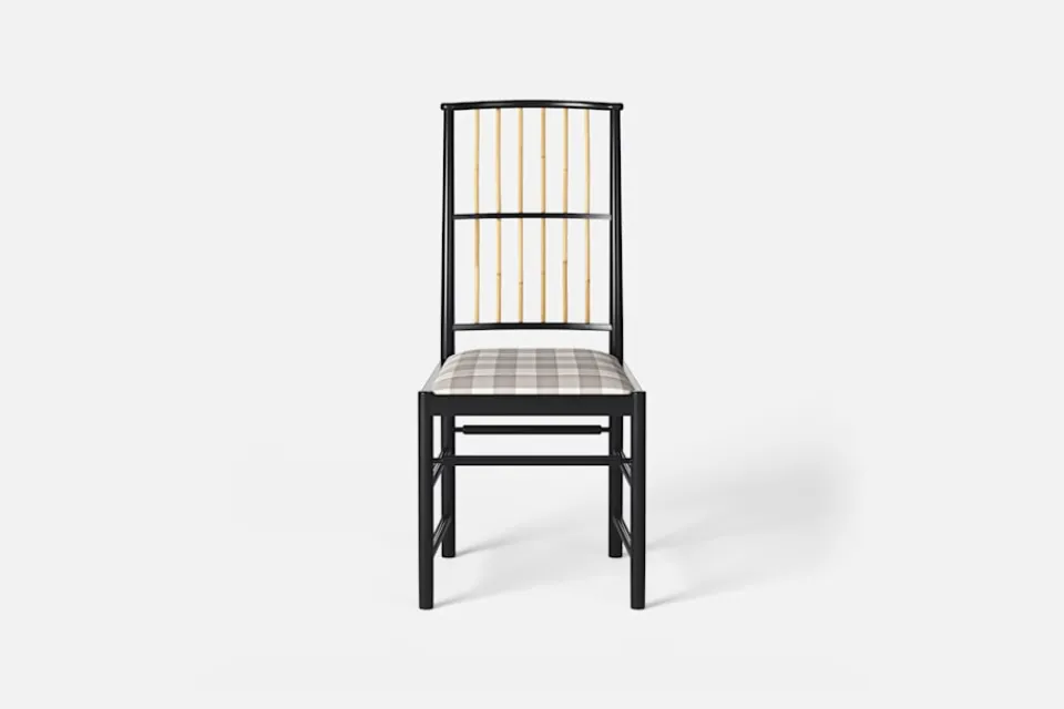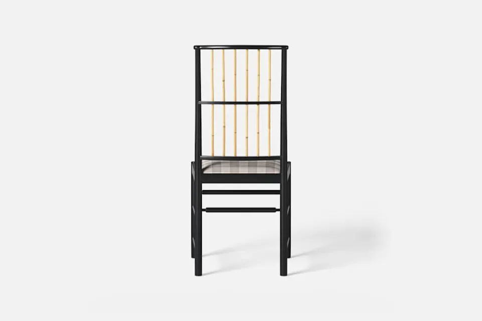 Josef Frank ansåg att en matsalsstol skall vara så lätt att den kan lyftas med ett finger och att användaren lätt bör kunna flytta stolen i rummet. Han formgav denna gracila stol år 1925 för sitt företag Haus und Garten i Wien. För att skapa spänning i formen valde Josef Frank ofta att blanda olika träslag och material, så även i denna klassiska stol.