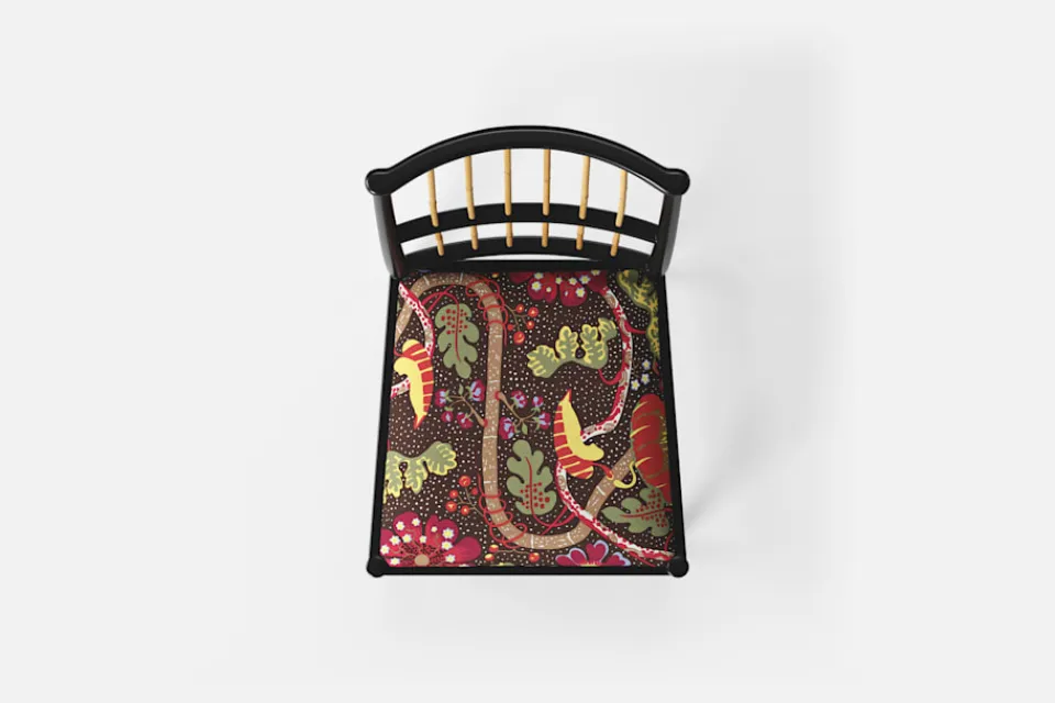 Josef Frank ansåg att en matsalsstol skall vara så lätt att den kan lyftas med ett finger och att användaren lätt bör kunna flytta stolen i rummet. Han formgav denna gracila stol år 1925 för sitt företag Haus und Garten i Wien. För att skapa spänning i formen valde Josef Frank ofta att blanda olika träslag och material, så även i denna klassiska stol.
