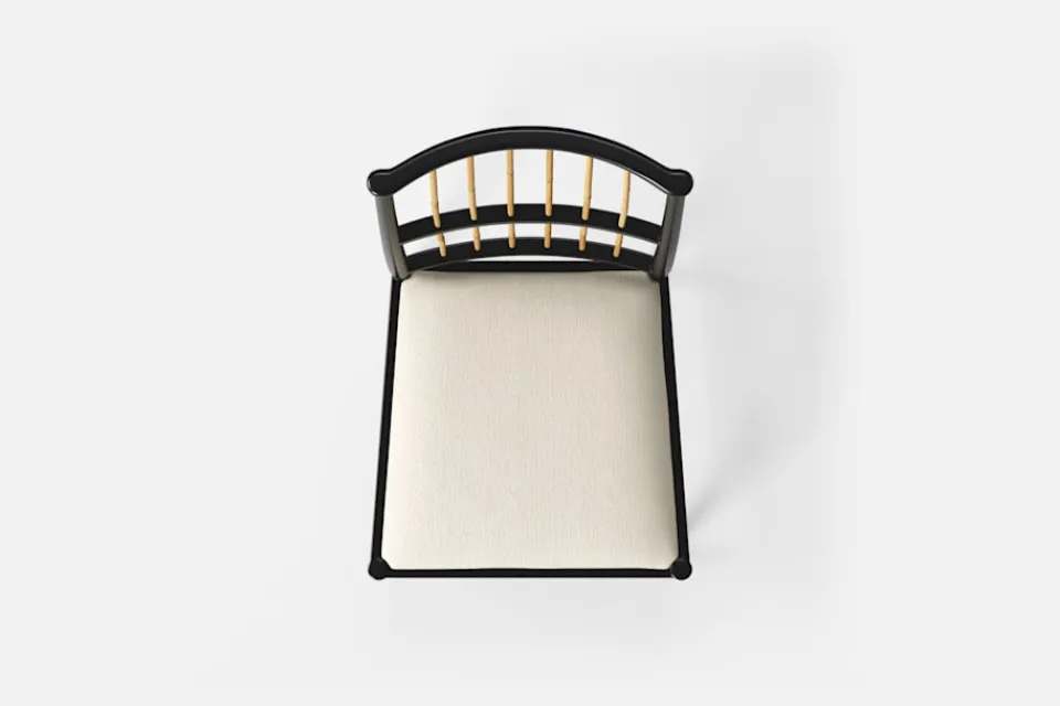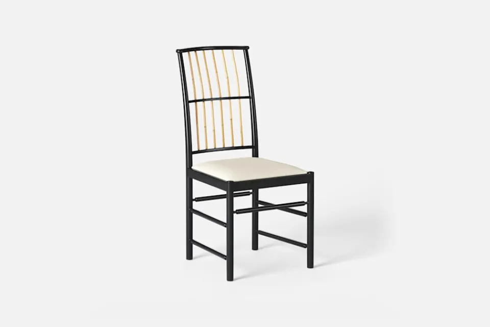Josef Frank ansåg att en matsalsstol skall vara så lätt att den kan lyftas med ett finger och att användaren lätt bör kunna flytta stolen i rummet. Han formgav denna gracila stol år 1925 för sitt företag Haus und Garten i Wien. För att skapa spänning i formen valde Josef Frank ofta att blanda olika träslag och material, så även i denna klassiska stol.