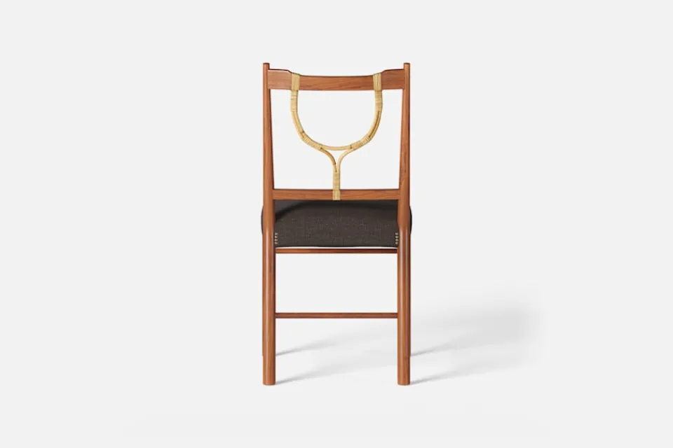 Underredet med sina fyra sidoslåar och två tvärslåar ger stolen stadga och leder blicken upp mot den generöst tilltagna rygglyran av dubbla rottingrör, som tillverkas för hand av Larsson Korgmakare i Stockholm. Som ett smycke pryder rottinglyran den lätta stolen, som troligen var den sista som Josef Frank ritade under sin livstid.