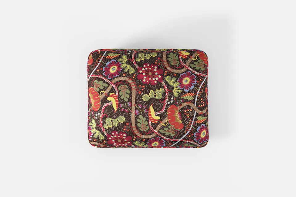 Denna fotpall formgavs av Josef Frank år 1934 och hör till fåtölj 336. Dess omsorgsfullt utförda stoppning och mjuka framtoning ger användaren en behaglig komfort.