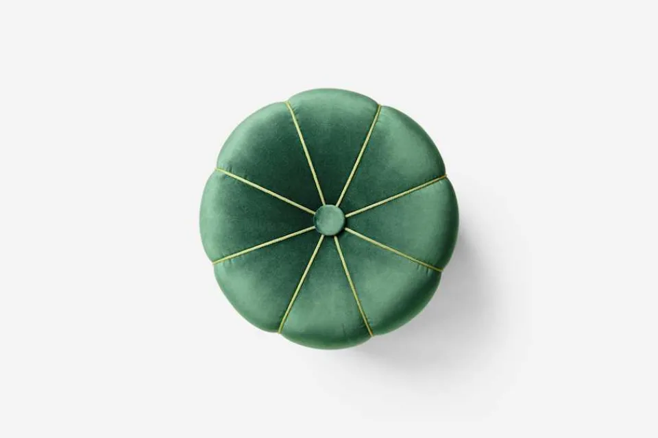 Den vackra, textilklädda pallen med mjuka, runda former ritades av Josef Frank för Svenskt Tenn cirka 1935. Pallen gjordes som en omarbetad variant av en möbel han skapade för sitt företag Haus und Garten i Wien, omkring 1929.