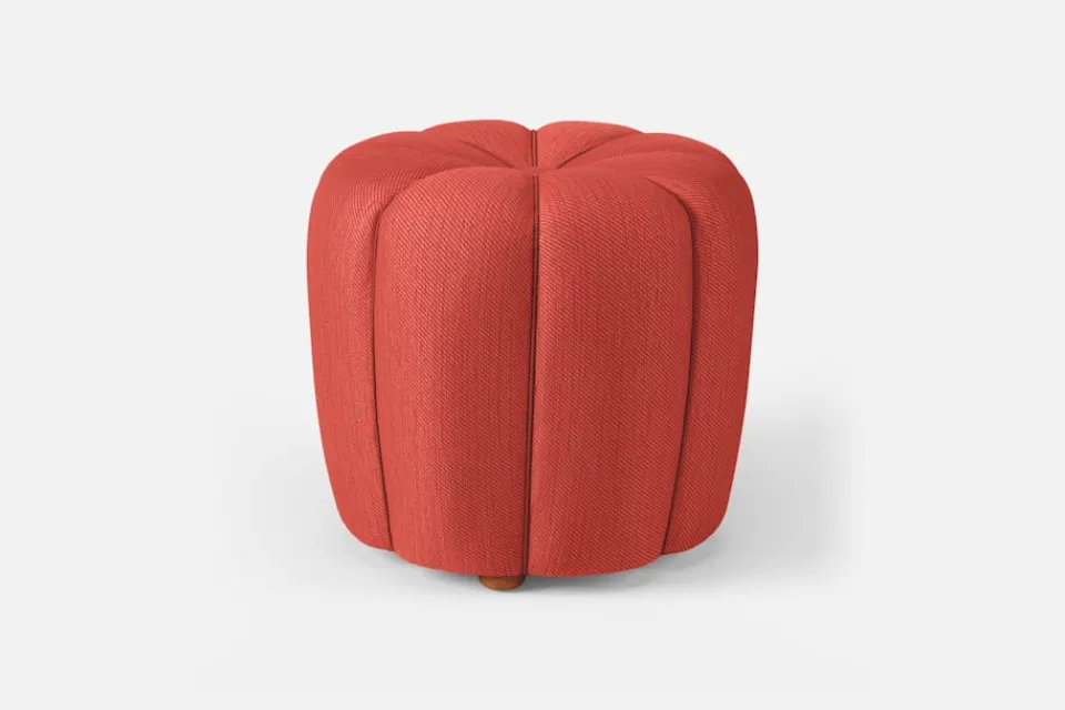 Den vackra, textilklädda pallen med mjuka, runda former ritades av Josef Frank för Svenskt Tenn cirka 1935. Pallen gjordes som en omarbetad variant av en möbel han skapade för sitt företag Haus und Garten i Wien, omkring 1929.