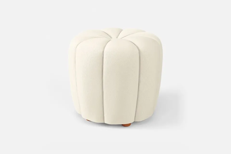Den vackra, textilklädda pallen med mjuka, runda former ritades av Josef Frank för Svenskt Tenn cirka 1935. Pallen gjordes som en omarbetad variant av en möbel han skapade för sitt företag Haus und Garten i Wien, omkring 1929.