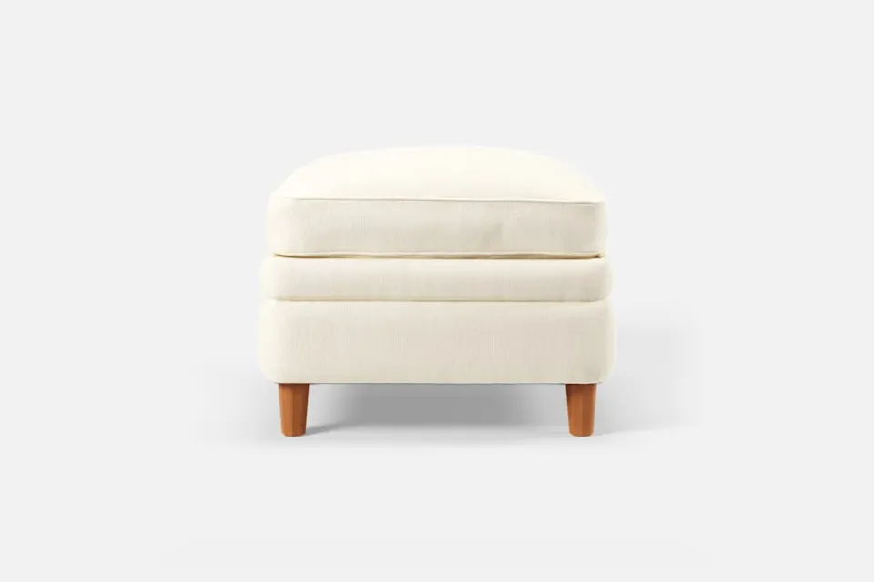 Denna fotpall formgavs av Josef Frank år 1936 tillsammans med fåtölj 568. Den generösa sittplymån under dynan och de facetterade nedåt avsmalnande benen är typiska för Josef Franks formspråk.