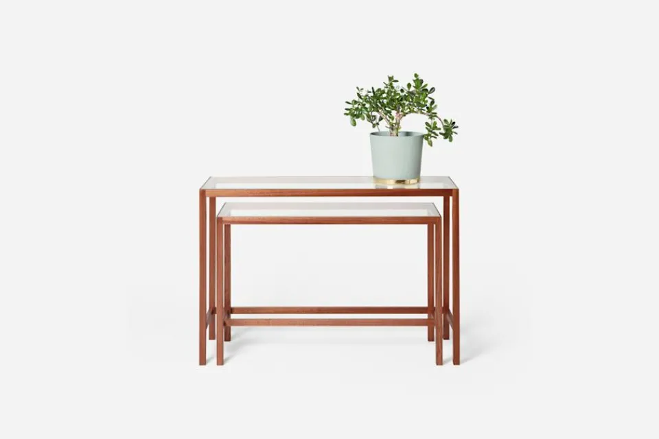 Sidobordet 548 består av två nätta bord som kan placeras under varandra likt ett satsbord. Det formgavs av Josef Frank för Svenskt Tenn 1934, och har tillverkats i olika utföranden. Denna variant i mahogny med bordsskivor i glas har tagits fram för att komma så nära originalritningen som möjligt.