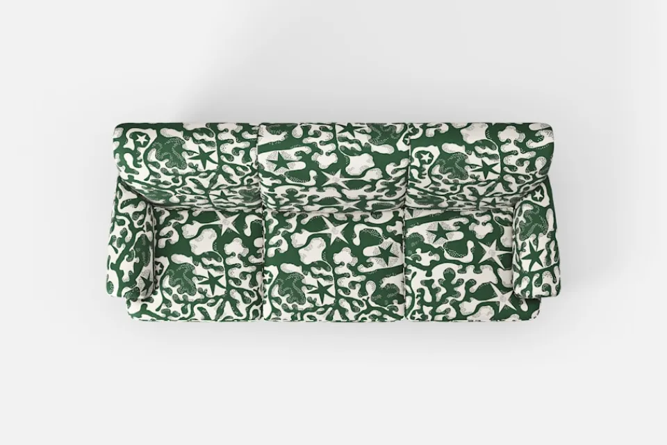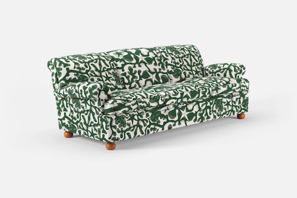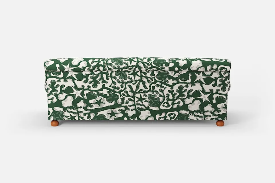 Josef Frank formgav den här långa, rymliga soffan under 1930-talets andra hälft. Ryggpartiet delas av rep vilket utgör en spännande dekor. Enligt Josef Frank skulle också det moderna hemmet vara en plats för vila och bekvämlighet, sittplymåer och dubbla fjädersystem ger en utmärkt komfort.