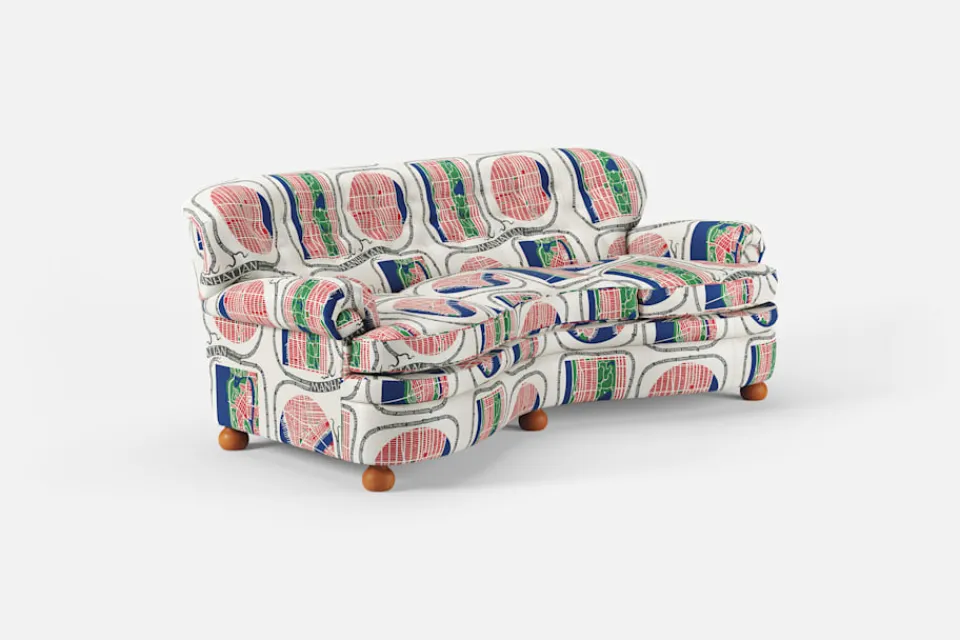 Med soffa 968, formgiven i slutet av 1930-talet, bröt Josef Frank tidens normer genom att skapa en svag svängning i ryggen och en kraftigare inbuktning i soffans front. Denna möbel har fått smeknamnet ”Banansoffan”, efter sitt mjukt svängda formspråk.