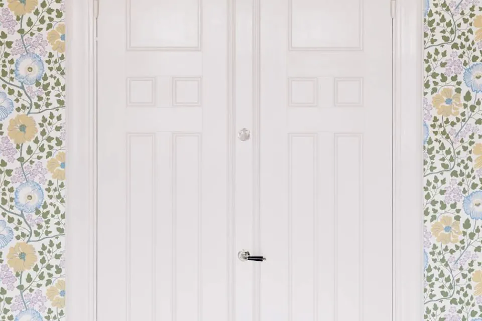 Vid eventuella fläckar på tapeten, rengör försiktigt med en lätt fuktad trasa.
