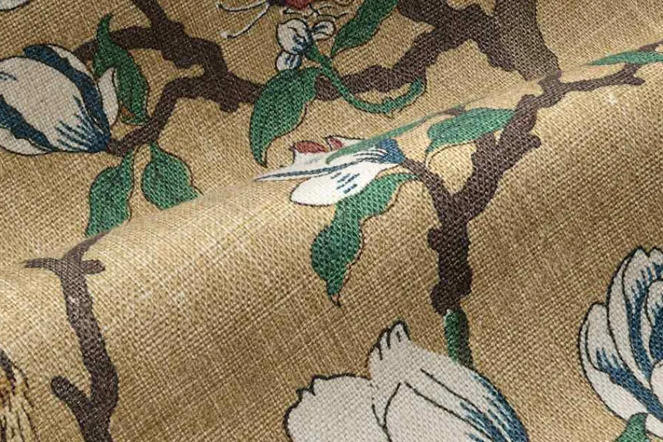 Svenskt Tenns grundare Estrid Ericson reste mycket till olika platser runt om i världen. Hon letade alltid efter vackra föremål och textilier att ta hem och sälja i butiken på Strandvägen. Textil Japanese Magnolia kommer från det engelska textilföretaget GP & J Baker, som i sin formgivning ofta hämtade inspiration från historiska mönstertraditioner. Estrid Ericson började köpa in textil från dem redan under 1930-talet. Japanese Magnolia, med sin naturalistiska skildring av magnolieträd bebodda av småfåglar och fjärilar, formgavs av William Turner 1917 och trycktes för första gången med blocktryck på fint linnetyg. Sedan dess har mönstret troligen aldrig varit i produktion, utan förblivit en dold skatt i GP & J Bakers arkiv. Över hundra år gammalt är det lika relevant idag som när det först ritades.