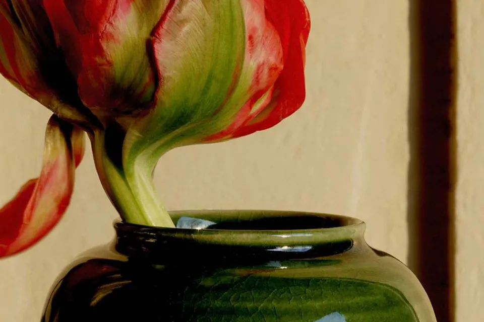 Liten, handgjord keramikvas av Annali Andersson, inspirerad av klassiska, östasiatiska förvaringskrus och vaser. Den oribegröna färgen är en östasiatisk glasyr i naturgrönt som använts för att återspegla berg och floder.