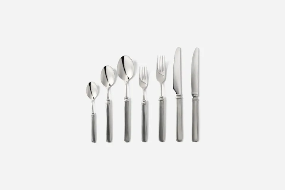 De klassiskt formgivna besticken i tenn och rostfritt stål är tillverkade av ett litet, familjeägt företag som grundades 1954. Företaget tillverkar tennföremål, keramik och glas småskaligt och hantverksmässigt i den italienska staden Brescia.
