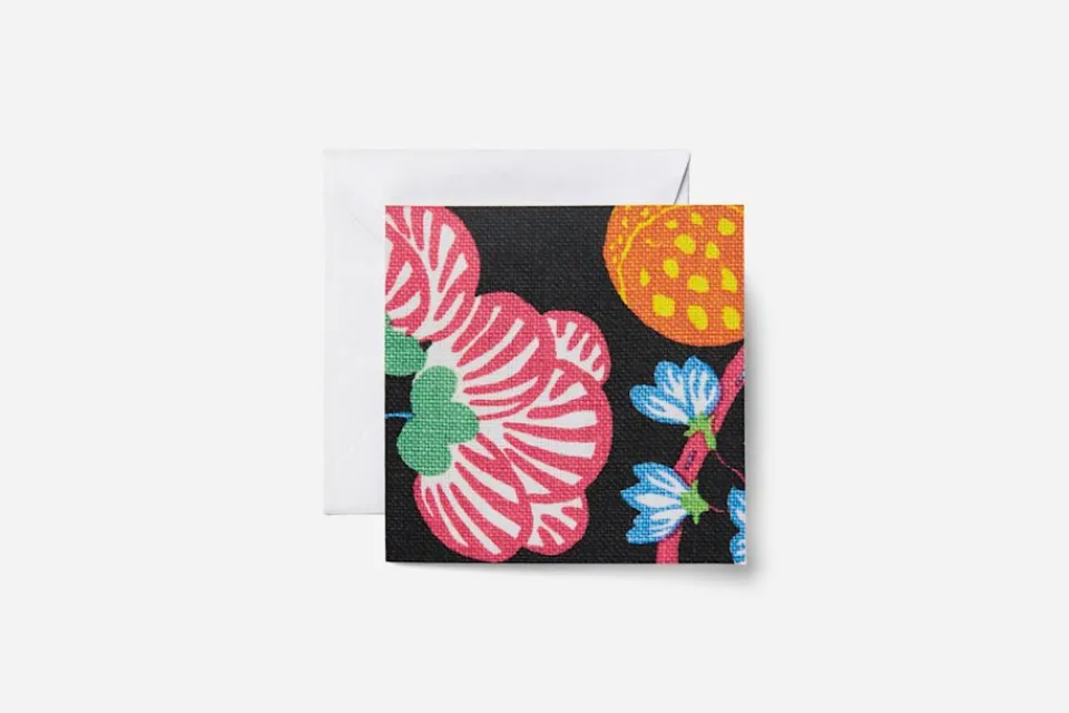 Gåvokort med olika färgstarka mönster av Josef Frank.
