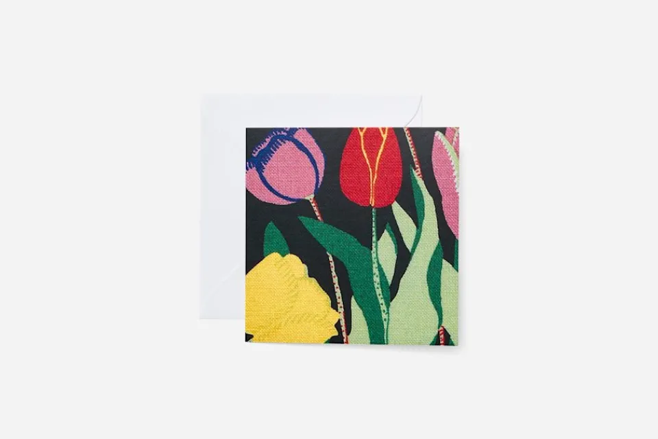 Gåvokort med olika färgstarka mönster av Josef Frank.