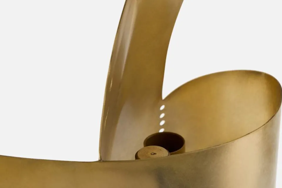 Mässingslamporna av Alekos Fassianos är obehandlade och får inte utsättas för fukt. Vid rengöring, torka ytorna lätt med en fibertrasa eller putsa försiktigt med mässingsputs.