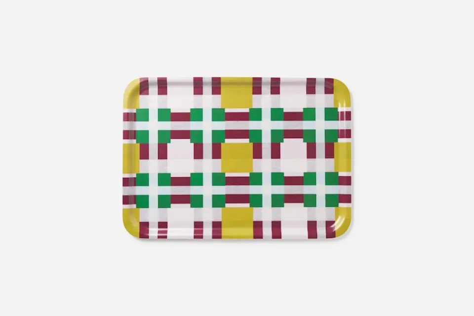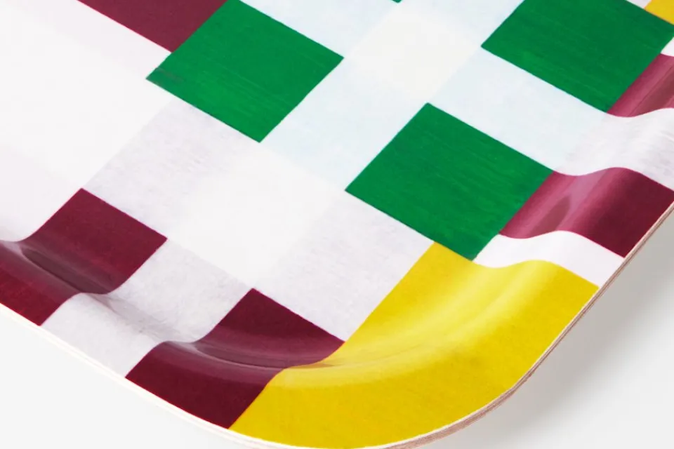 Konstnären och formgivaren Evelina Kroon älskar hantverk i alla dess former och fascineras av mötet mellan olika färger, material och kompositioner. Rutmönstret löper som en röd tråd i hennes konstnärskap, men inspirationen finner hon överallt; i naturen, i vardagen, i samtida och historisk konst. Den rutiga brickan är formgiven exklusivt för Svenskt Tenn 2023.