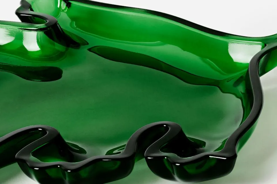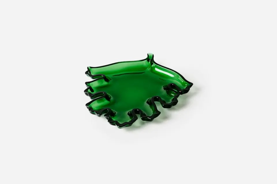 Dekorativt fat i form av ett löv i pressglas, framtagen efter en förlaga i gjuten mässingsplåt som visades på Världsutställningen i New York 1939. Glasfatet kom i produktion 1943, och tillverkades då på Gullaskrufs glasbruk i Småland. Sedan dess har fatet tillverkats i tenn, medan varianten i glas har legat vilande i Svenskt Tenns arkiv. Till vintern 2021 återtogs glasfatet i produktion, och idag tillverkas det hantverksmässigt på Reijmyre glasbruk några mil norr om Norrköping.