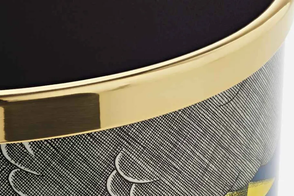 En dekorativ papperskorg med Fornasettis karaktäristiska illustrationer i lackerad plåt. Mönstret Sole di Capri (Capris sol på svenska), skildrar en halvt dold sol över bebyggelsen på Capri. Samtliga Fornasettis kreationer, från möbler till inredningsdetaljer, tillverkas för hand i Italien. I företagets ateljé arbetar skickliga hantverkare med samma tekniker som användes när de allra första produkterna togs fram. Färgen appliceras för hand med utgångspunkt i originalmönstren.