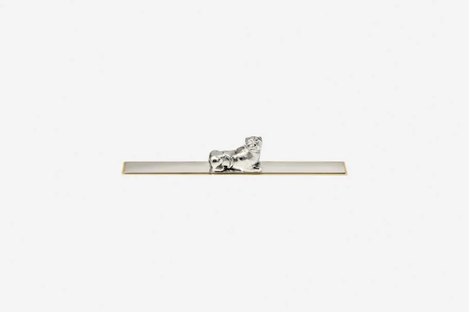 Att pryda ett föremål genom att addera ett annat objekt var något som Estrid Ericson gjorde ofta. Lejonet är formgivet av Anna Petrus och linjalen komponerades på 1920-talets andra hälft.