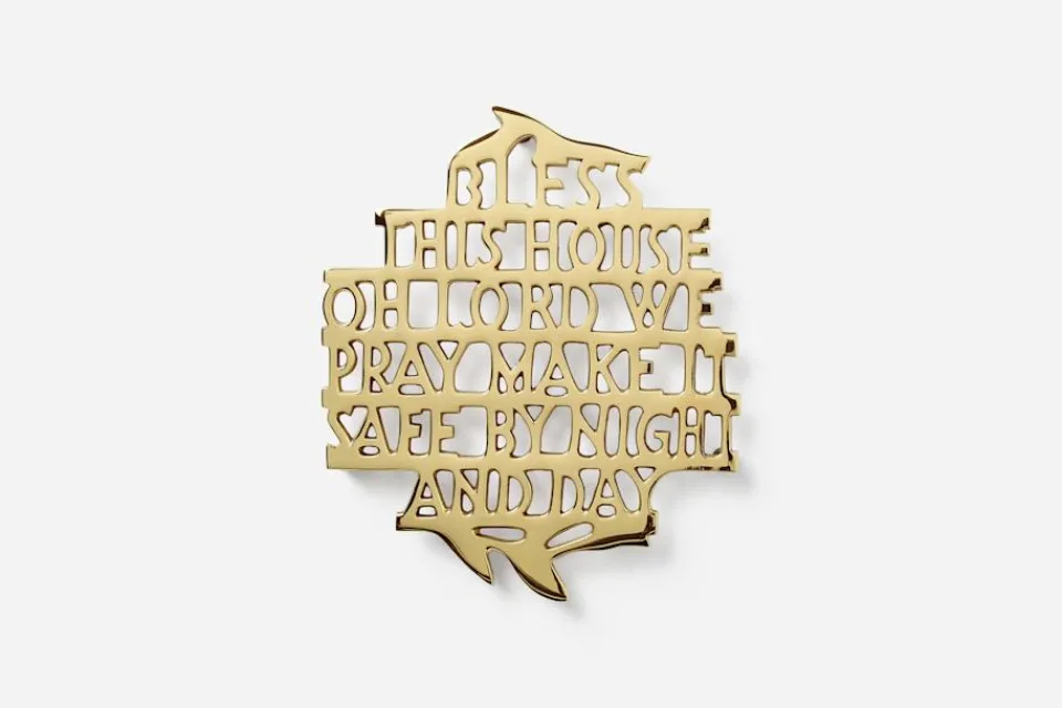 ”Bless this house oh Lord we pray, make it safe by night and day”. Underlägget introducerades av Estrid Ericson på 1950-talet, som en dörrdekoration avsedd att skydda hemmet från allt ont. Texten kommer från den första raden i en sång skriven 1927 av poeten Helen Taylor och kompositören May Brahe.