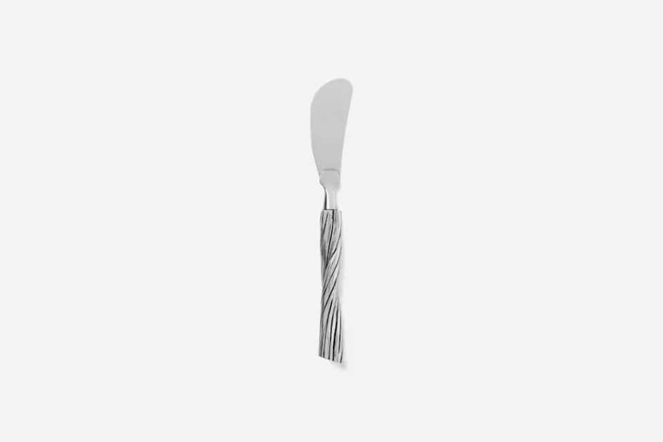 Den eleganta smörkniven Gren i tenn är en vidareutveckling av de klassiska tennljusstakarna med samma namn, formgivna för Svenskt Tenn av konstnären och skulptören Jakob Solgren Nordenskiöld 2011. Besticken bär samma vackra, naturinspirerade formspråk och tillkom i sortimentet 2025.