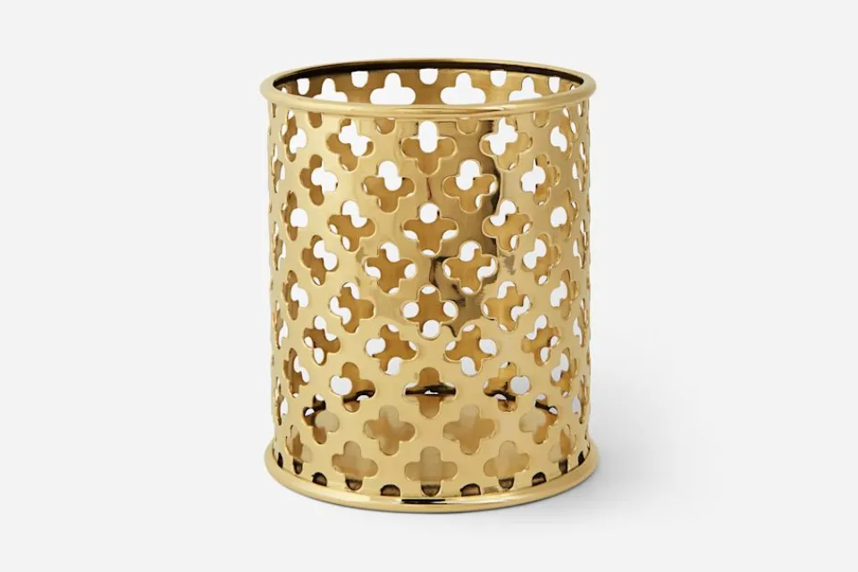 Det dekorativa flaskstället i mässing formgavs av Josef Frank för Svenskt Tenn 1948-49. Klövermönstret är klassiskt och återfinns på flera produkter i sortimentet, däribland Josef Franks paraplyställ och papperskorg i olika färger.