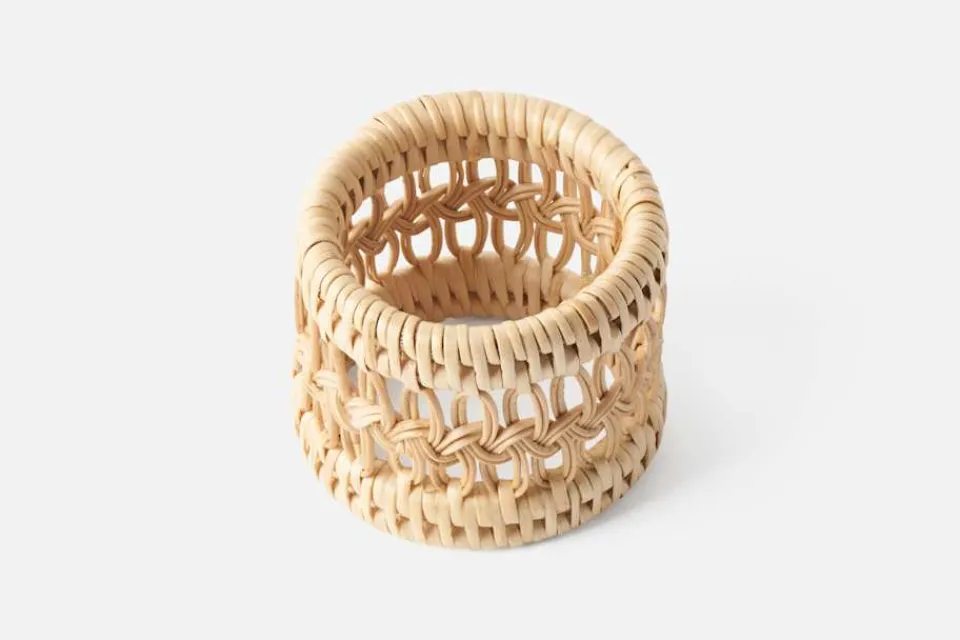 Flätade servettringar i rotting, hantverksmässigt tillverkade av kvinnokooperativet Manava i Kambodja. Kooperativet skapar exklusiva, hantverksmässiga rottingprodukter i traditionell kambodjansk design, samtidigt som de tillhandahåller utbildning och stärker kvinnor i arbetet.