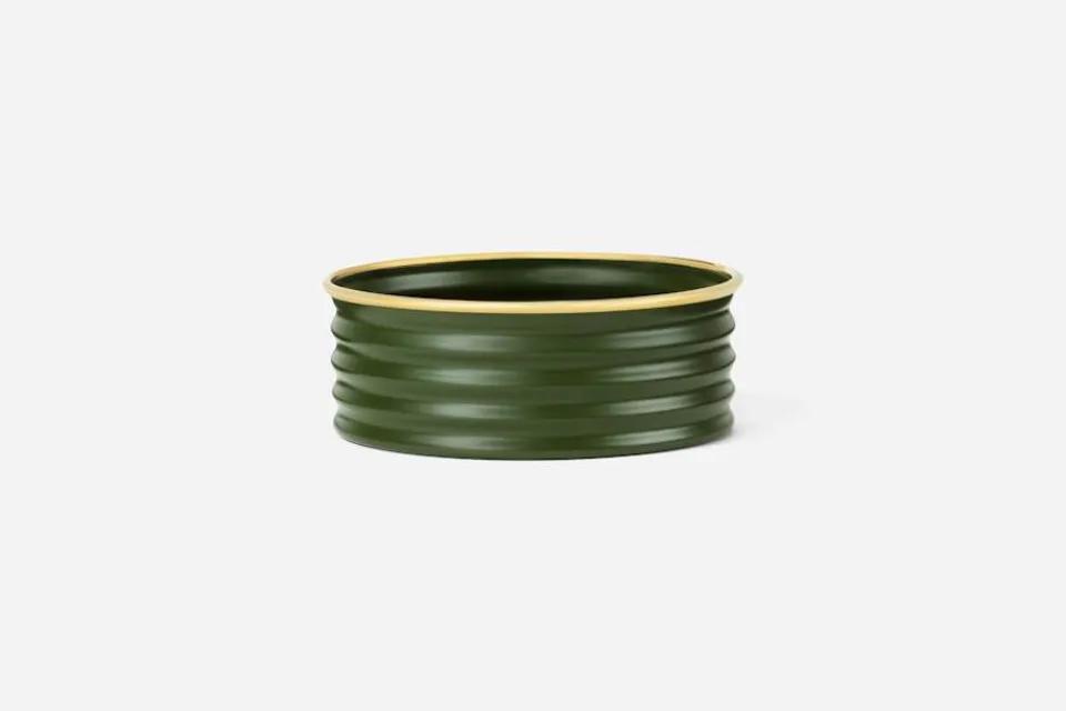 Denna vincoaster i grönlackad mässing är en ny, omarbetad variant av en klassisk design som funnits bevarad i Svenskt Tenns arkiv.