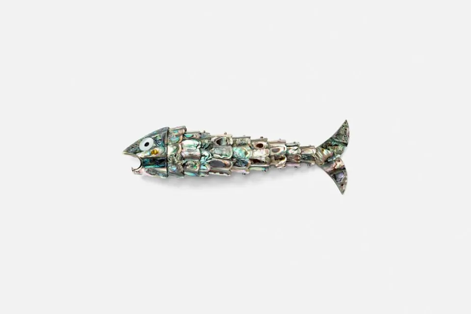 Svenskt Tenns lekfulla kapsylöppnare tillverkas helt och hållet för hand i alpacka (nysilver) och pärlemor. Ett gediget hantverk ligger bakom varje del i tillverkningsprocessen, och gör varje skimrande fisk unik i sitt utförande.