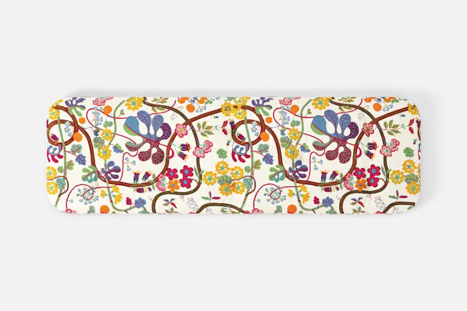 Tyget är ej avtagbart. Vid rengöring rekommenderas kemtvätt av hela dynan.