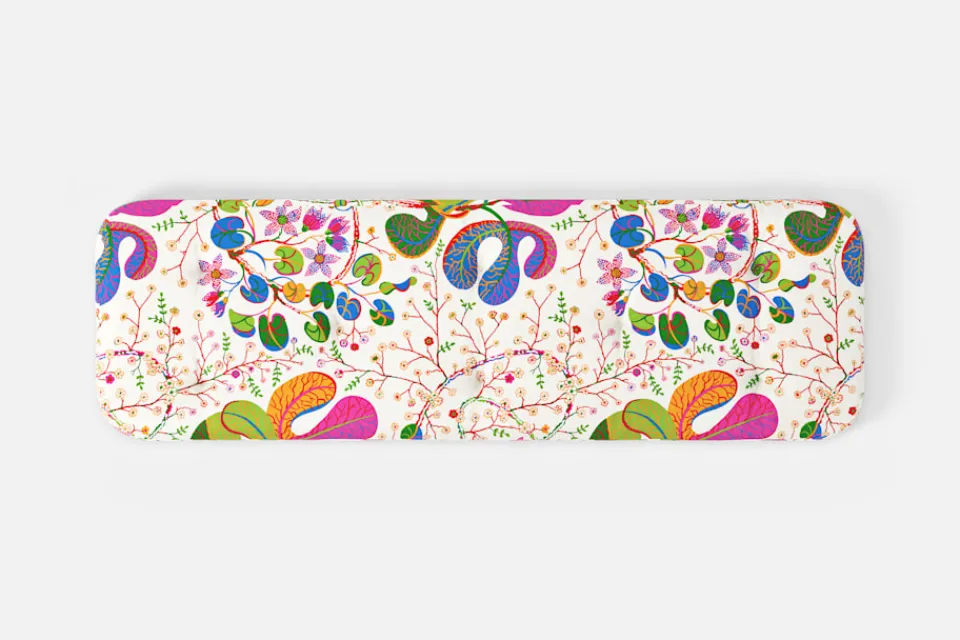 Tyget är ej avtagbart. Vid rengöring rekommenderas kemtvätt av hela dynan.