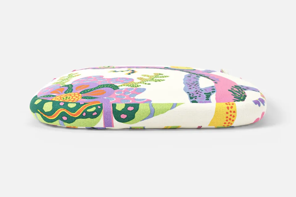 Tyget är ej avtagbart. Vid rengöring rekommenderas kemtvätt av hela dynan.