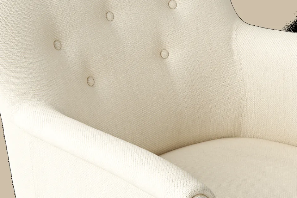 Eventuella fläckar på möbelns klädsel kan avlägsnas med en vit, ren trasa fuktad med vatten. Gnid inte på fläcken, utan badda försiktigt upp vätskan. Vid behov kan ett milt fläckborttagningsmedel användas, men prova alltid först på en mindre synlig del av materialet. Använd aldrig starka lösningsmedel och följ alltid skötselråden för möbelns specifika klädsel. Tänk på att direkt solljus och värme påverkar ytans färg och hållbarhet över tid.