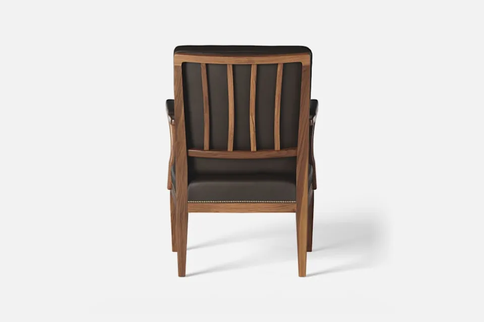 I formgivningen av karmstol 868 inspirerades Josef Frank av 1700-talets nätta karmstolar med elegant svängda armstöd och raka ben. Han formgav stolen 1938.