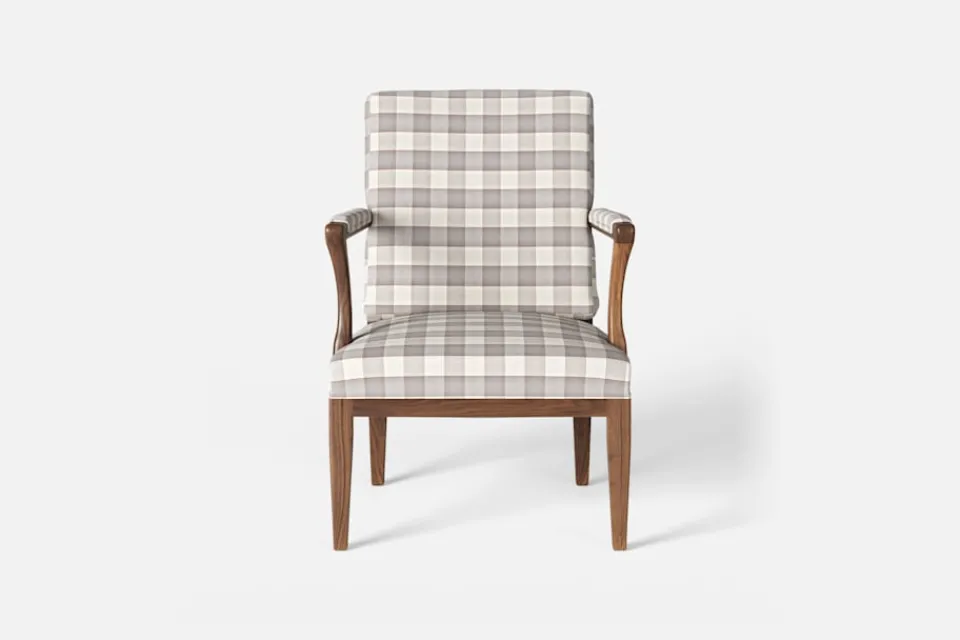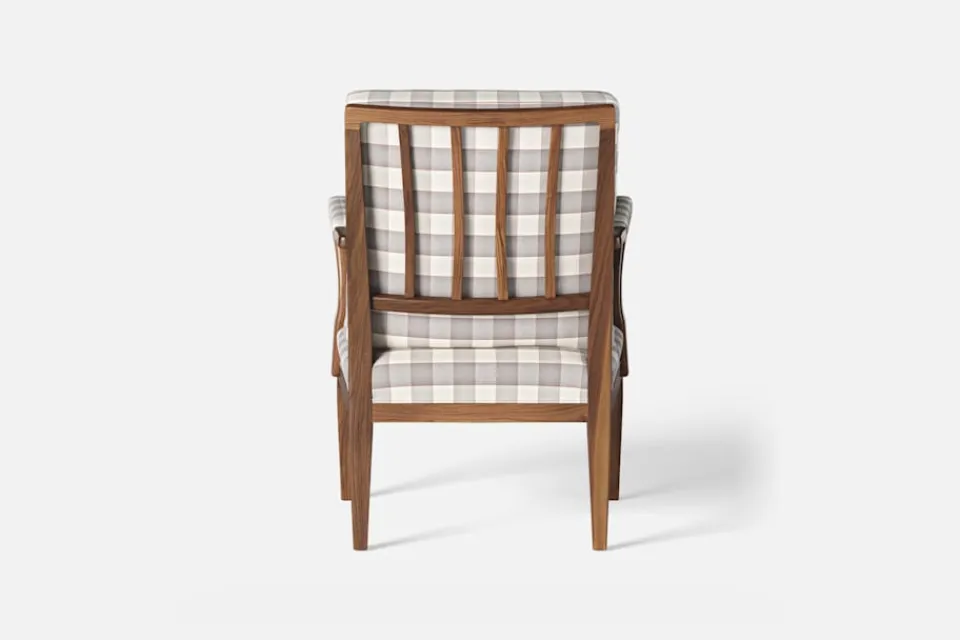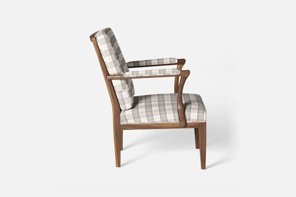 I formgivningen av karmstol 868 inspirerades Josef Frank av 1700-talets nätta karmstolar med elegant svängda armstöd och raka ben. Han formgav stolen 1938.