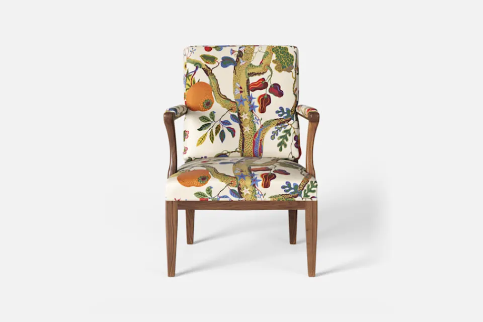 I formgivningen av karmstol 868 inspirerades Josef Frank av 1700-talets nätta karmstolar med elegant svängda armstöd och raka ben. Han formgav stolen 1938.
