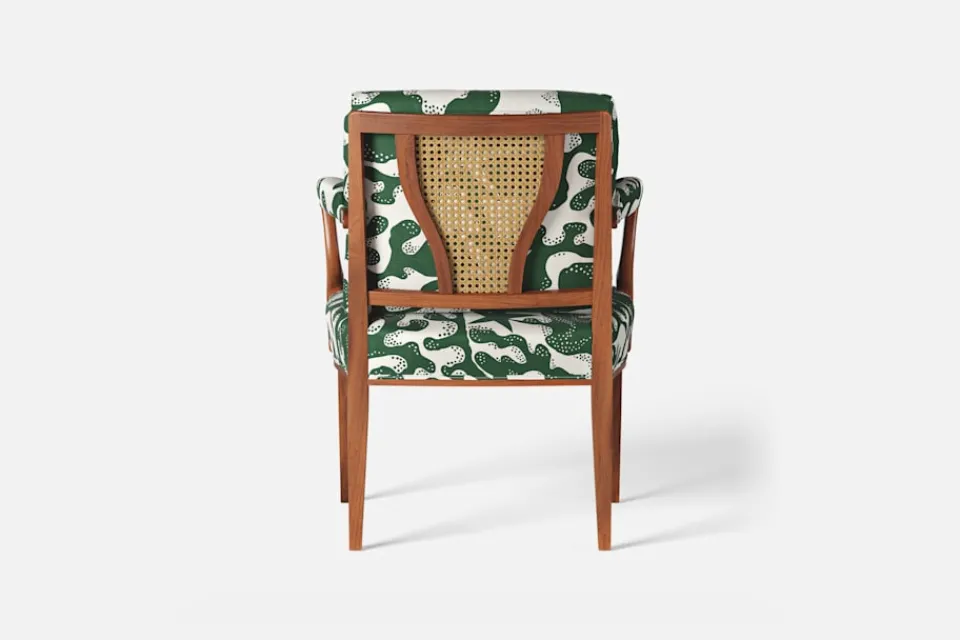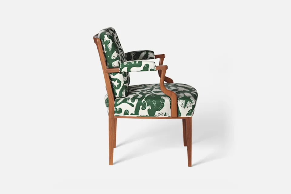 Med inspiration från 1700-talets nätta karmstolar formgav Josef Frank karmstol 969. För att skapa spänning i formgivningen valde Josef Frank ofta att blanda olika träslag och material. Karmstol 969 är gjord i mahogny med infällning av rotting i ryggen bakom den löstagbara kudden. Stolen formgavs 1939 och finns i två olika sitthöjder.